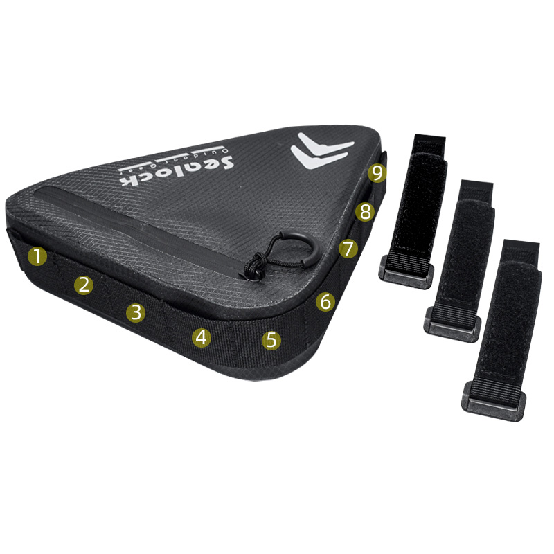 تسمه های قابل تنظیم: کیسه مجهز به 3 تسمه اتصال دهنده قابل تنظیم در اطراف بدن است ، می توانید تسمه های بستنی قابل بازسازی را در صورت نیاز برای تنظیم نصب کیسه در موقعیت مورد نظر خود تنظیم کنید (2fixed ong the Top Tube ، 1fixed روی لوله قائم)